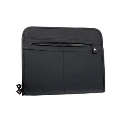 Premium quality black leather zip in DIN A4 format With full zip closure and zip outer pocket Left: with zip pocket, slip pocket A4, three pen loops and two business card slots Right with ID slot A4 writing pad Dimensions: approx. 36 x 29 x 5 cm