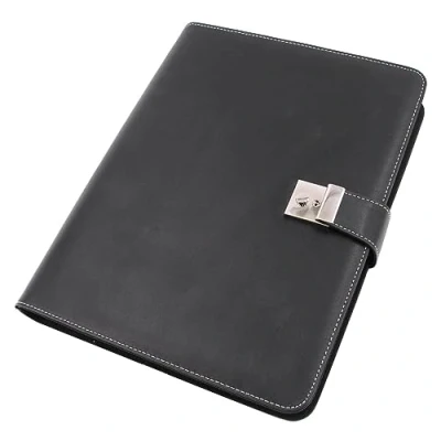 Crafted from premium Nappa leather for a professional look Sturdy 4-ring mechanism securely holds A4 documents Zipper closure ensures added protection Lightweight design perfect for business travel