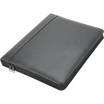High-quality ring binder made from deep black nappa leather in DIN A4 format With 2 slip pockets A4, 3 business card slots, pen pocket Includes ballpoint pen, with all-round zip Removable 20 mm 4-ring mechanism Dimensions: approx. 34.5 27 4 cm