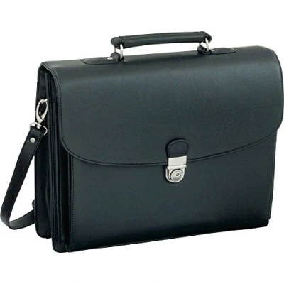 Alassio Forte Briefcase with Shoulder Strap 5 Document Sections Leather look Black Ref 92011, Black,
