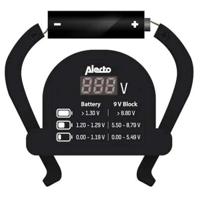 UNIVERSAL COMPATIBILITY The Alecto BTT2 is a versatile battery tester that works with all popular battery types, including AA, AAA, C, D and 9V block batteries; Perfect for a wide range of household and electronic devices User-friendly design: easy to use, thanks to the flexible holders that adapt to different battery sizes; simply place the battery between the + and - poles of the tester to get an instant status indicator Direct status indicator with colour coding: the condition of the battery is immediately visible on the meter Essential for every household: the Alecto BTT2 is an essential tool for every household to check the condition of the batteries quickly and efficiently; This helps ensure optimal use of batteries and avoid unexpected failures of devices Box contents: the package includes the Alecto BTT2 battery tester, ready for immediate use to check your battery capacity; A handy tool that should not be missing in any household