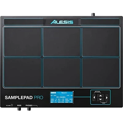 Alesis SamplePad Pro 8 Pad Percussion and Sample Triggering Instrument with Rubber Pads, Active Blue LED Illumination, Expansion Options for 2 Additional Triggers 200+ Built In Sounds