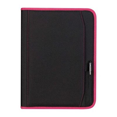 Leatherette folio With zip closure, multiple pockets, mobile phone pocket and USB stick, complete with lock Colour black/fuchsia f.to cm. 34 x 25.5 x 3