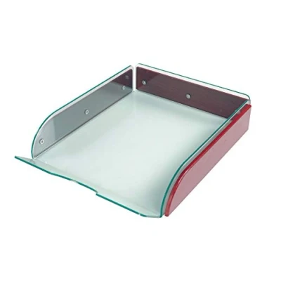 A4 document tray Made from clear acrylic With wooden finish