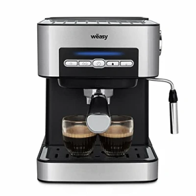 ALLESM Wëasy KFX32 Automatic Pressure 20 Bar Stainless Steel Espresso Machine, Portable, 4 Modes, 1.6L Tank, Cup Warmer, Steam Nozzle, Filters & Measuring Spoon Included, Coffee Milk Drinks