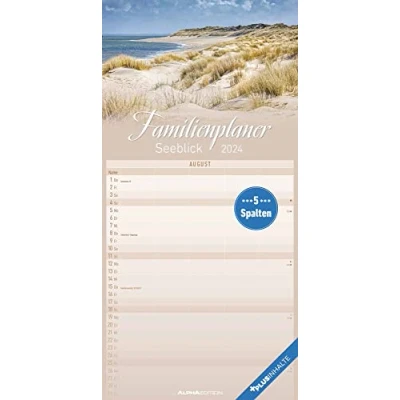 Alpha Edition Family Planner Lake View 2024 Timer 22 x 45 cm with Holiday Dates 5 Columns Wall Many Additional Information
