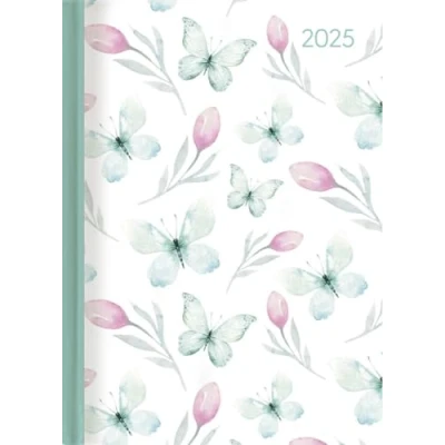 Alpha Edition Ladytimer Butterfly 2025 Pocket Calendar, 10.7 x 15.2 cm, Calendar with 192 Pages, Notes after Every Day, Moon Phases and International