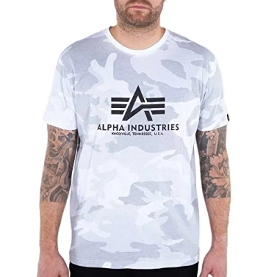 ALPHA INDUSTRIES Basic Camo T Shirt for Men, White Camo, 3XL