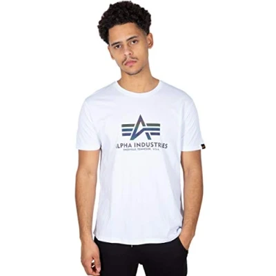 ALPHA INDUSTRIES Basic T Rainbow Ref Shirt for Men, White, XS