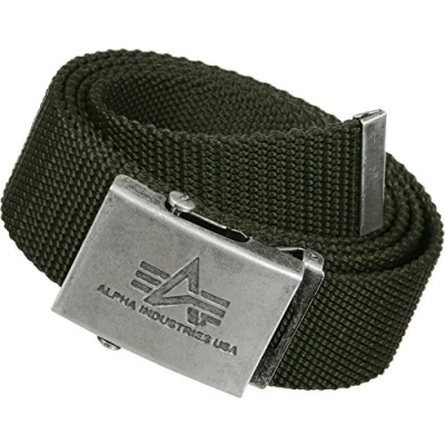 AmazonUnisex belt Fit: one size Detail 1: clasp with die-cut Alpha logo Detail 2: infinitely adjustable