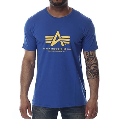 T-shirt for men FIT: Regular fit DETAIL 1: Flag label on left sleeve DETAIL 2: Alpha Industries screen print on chest DETAIL 3: Rib cuffs at neck