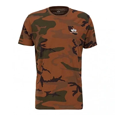 ALPHA INDUSTRIES Men's Basic T Small Logo Camo Shirt, Burned Camo, S