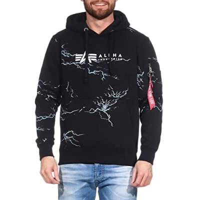 ALPHA INDUSTRIES Men's Lightning AOP Hooded Sweat Sweatshirt, Black/White, S