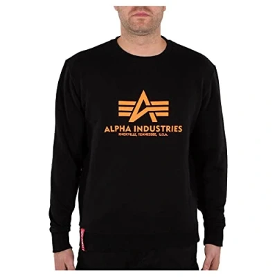 ALPHA INDUSTRIES Men's Basic Sweater Reflective Print Sweatshirt, Black/Refl.oran, S