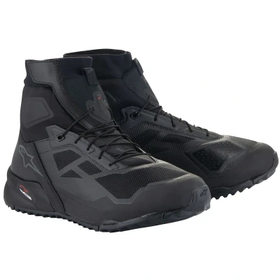 Alpinestars CR-1 Motorbike Shoes The advanced CR-1 shoes have been developed to improve comfort when riding on and off the bike and are specially optimised for warm weather. They are made of microfibre, 3D mesh and breathable tech textile, which ensures excellent air circulation and ventilation. They are ideal for touring and sporty riding. Features: The DROP of the sole (the offset between the heel and toe) is set at 9mm (many running shoes have a 9mm offset) to ensure a smooth transition from heel to toe when running The shape of the running shoes provides a snug fit combined with a generous liner volume for excellent all-day foot comfort Compressed, durable EVA comfort midsole with heel stabilisers and a heel cushioning pad for enhanced support and excellent all-day comfort OrthoLite® sockliner provides long-term cushioning and a high level of breathability and comfort Exclusive dual-density rubber sole with grippy lugs and a tapered profile for grip in all weather conditions Flex grooves in the forefoot area are incorporated into the midsole to increase comfort in the forefoot area (the grooves promote flexibility in the forefoot area) Integrated medial and external ankle discs for impact protection with multi-layer padding for added protection Alpinestars Transversal Protection Frame (TPF) covers the foot while providing the necessary support on the foot post without compromising forefoot flexion to ensure superior running comfort EN 13634:2017, Category II