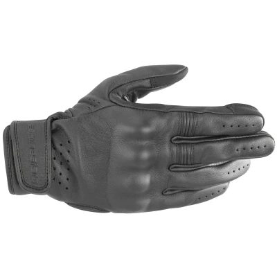 Alpinestars Dyno Leather Gloves The Dyno leather gloves are hard-wearing urban gloves with a short cuff that offers high abrasion resistance and knuckle protection for effective impact protection thanks to its goatskin leather. With its reduced, minimalist design, the Dyno leather gloves are predestined for use with custom and classic bikes. Features: The main goatskin leather construction offers a high level of comfort, abrasion resistance and breathability Conductive material on the index finger and thumb tip enables the use of touchscreen devices Strategically positioned perforations for optimum air circulation and ventilation Leather accordion panel on the fingers for improved flexibility and freedom of movement Integrated closure at the top of the wrist for easy handling Covered, hard knuckle protection system (protection level 1) with ultra-ergonomic shape for excellent impact and abrasion resistance Leather palm construction includes padding reinforcements in the palm area for added protection and excellent durability and comfort EN 13594:2015