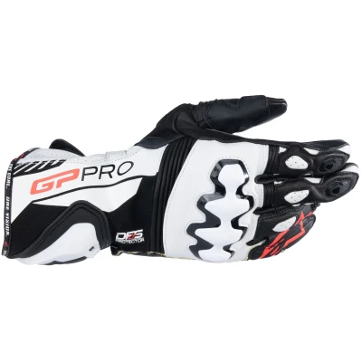 Alpinestars GP Pro R4 Gloves - black / white The GP Pro R4 gloves have been specially developed for racing and offer optimum performance. Through specific mapping of the materials, they ensure an excellent fit and a high level of comfort, while at the same time guaranteeing maximum protection. These gloves are made from high quality materials and feature Alpinestars Dynamic Friction Shield (DFS) knuckle and cuff protectors, aramid reinforcements and advanced ventilation, making them perfect for outstanding performance on the track. Features: Made from a blend of cow and goat leather on the backhand and kangaroo leather on the palm and fingers for superior performance and the optimum blend of softness, feel and protection Impact-absorbing layers on the fingers, backhand, palm landing zone and side of the hand for added protection in key areas Double closure system with wrist adjustment and cuff closure tab Perforated knuckle gussets for improved hand ventilation Inner palm seam construction for superior rider comfort Accordion leather inserts on the fingers, thumb and backhand for improved fit and comfort Dual-density DFS Race knuckle protector for maximum protection against repeated impacts with a soft mount for improved rider comfort and an ultra-adaptive fit The finger and knuckle protectors feature stitched leather inserts that ensure maximum safety while being extremely adaptable TPU finger protection DFS Race cuff for high abrasion resistance Side reinforcements with hard palm slider and finger sliders for superior abrasion resistance and reduction of heat transfer Aramid lining on the backhand and in the landing zone for additional protection The finger bridge on the third and fourth fingers prevents the fingers from rolling and separating in the event of a fall EN 13594:2015