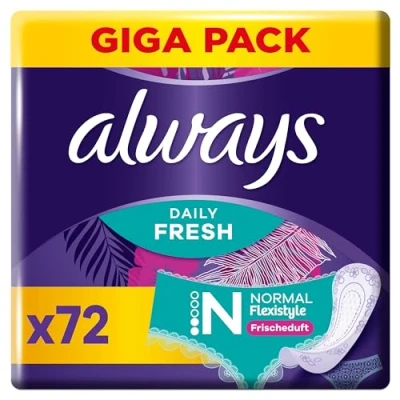 Always Daily Fresh Women's Normal Pantiliners (72 Pads), Flexistyle, Gigapack, with Fragrance, Suitable for All Panty Shapes, Breathable, Flexible
