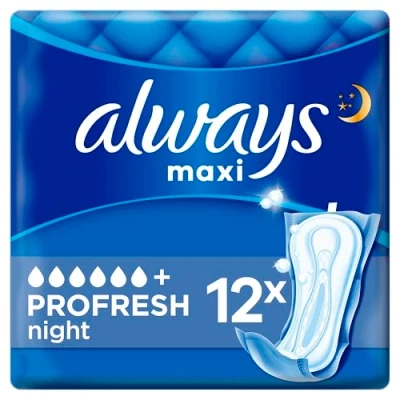 Always Maxi Night ProFresh Sanitary Pads without Wings (Pack of 12)