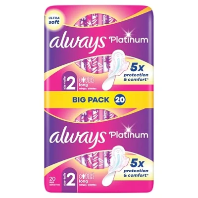 Always Platinum Long Plus Size 2 Sanitary Towels Wings, pack of 20