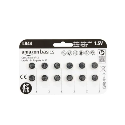 Amazon Basics 12 Pack LR44 Alkaline Button Cell Battery, 1.5 Volt, Long Lasting Power, Mercury Free
