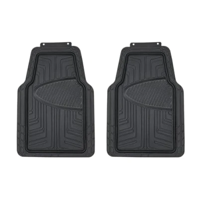 All-season rubber floor mat (2-piece front set) for any car, SUV, or truck Made of premium, thick, heavy-duty BPA-free rubber that's nontoxic and odorless; long-lasting, fade-resistant design won't crack, split, or warp under harsh conditions Ergonomic no-slip grooves on the top provide comfortable foot traction, while anti-slip rubberized spikes on the bottom keep the floor mats securely in place Customizable―simply trim as needed with a pair of scissors to ensure the perfect fit; easy to clean and maintain