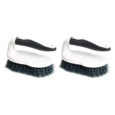 2-pack of heavy-duty scrub brushes for cleaning bathrooms, kitchens, tile, and more Firm polypropylene bristles stand up to sustained use Efficiently cleans and breaks down dirt, grease and grime Non-slip TPR long handle is easy to grip and apply scrubbing pressure Hanging feature for convenient storage and drying Previously Amazon Commercial brand, now Amazon Basics