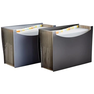 Two expanding file folders (one black and one gray) for organizing and storing important papers or documents Super-durable poly material provides waterproof and tear-resistant performance Acid free, PVC free, and archival quality for added peace of mind and safe storage Holds up to 260 sheets; 13 individual pockets, each expanding to 2.2 cm and tabbed for labels Full-size flexible flap and cord closure provide added security and safe transport