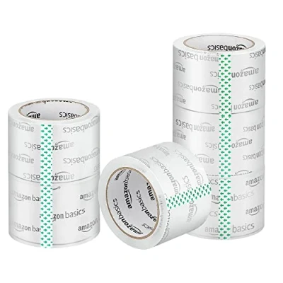 Moving and storage packing tape (6 rolls) for easily wrapping and keeping boxes securely closed shut Ideal for large, heavy boxes; helps keep valuables safe, whether moving, shipping, or storing Completely clear for a professional appearance on boxes or when taping over address labels Made of strong BOPP material with a water-based acrylic polymer adhesive; adhesive bond gets stronger over time for a long-lasting reliable hold Can be used with a tape gun for easy dispensing (not included); 7.6 cm-wide core; tape measures 7.1 cm wide by 49.9 m (unrolled)
