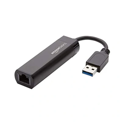 Amazon Basics USB 3.0 to 10/100/1000 Gigabit Ethernet Internet Adapter, Black, 1 Pack