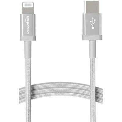 Amazon Basics USB C to Lightning Cable, Nylon Braided Cord, MFi Certified Charger for Apple iPhone 14 13 12 11 X Xs Pro, Pro Max, Plus, iPad, 1.8 m, Silver