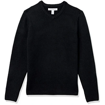 Amazon Essentials Men's Long Sleeve Soft Touch V Neck Jumper, Black, XS
