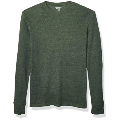 Amazon Essentials Men's Regular Fit Long Sleeve Waffle Shirt, Olive Heather, S