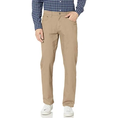 Amazon Essentials Men's Relaxed Fit 5 Pocket Stretch Twill Trousers, Khaki Brown, 36W / 34L