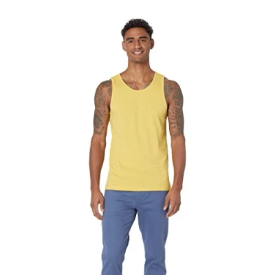 SLIM FIT: Slim fit fit through chest, and waist. LIGHTWEIGHT JERSEY: Soft and comfortable fabric for your go-to lightweight tank. Solids are 100% cotton and heathers are a cotton-poly blend. TANK TOP: This tank top is your perfect hot wather closet staple. Layer it with a collared shirt or pair it with shorts, jeans, or even chinos for those extra hot days. DETAILS: Jesey binding at armholes and neck for a clean look. Tagless printed label at back neck for extra comfort. Straight hem.