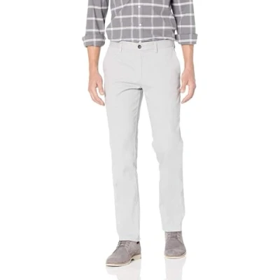 Amazon Essentials Men's Slim Fit Wrinkle Resistant Flat Front Chino Trouser, Light Grey, 28W / 32L