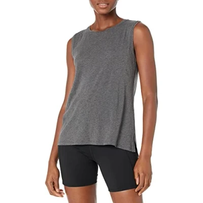 Amazon Essentials Women's Soft Cotton Relaxed Fit Yoga Tank (Available in Plus Size) (Previously Core 10), Dark Grey Heather, XL