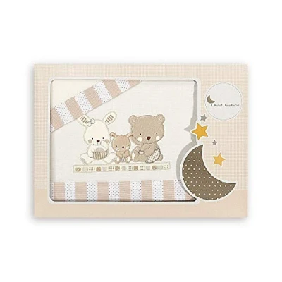 3 Piece Crib Sheet Set Fitted + Flat + Pillow Case Very cool and pleasant crib sheets thanks to its 100% cotton composition. The sheets are presented in a beautiful decorative box with clear front making them perfect for gifting. Fitted sheet: 60 x 120 cm, top sheet: 145 x 103 cm and pillowcase: 60 x 30 cm. Includes: fitted sheet, flat sheet and pillowcase, in a decorative box.