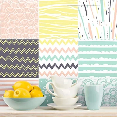 9 Adhesive Tile Stickers 20 x 20 cm Imitation Cement Tiles The cement tile sticker is a very thin vinyl printed on the top. Your azulejos mosaic tiles can be accurately applied without forming air bubbles. Easy to apply: the stickers are pre-cut. Simply peel off the backing paper and apply to dry, clean, smooth and non-porous surface. Durable and resistant: lasts for 5 years. Photo quality prints, non-flammable, non-toxic, no smell, high temperature resistant, scratch and water resistant, no use of products PERSONALISED DECOR: You have the opportunity to arrange each room in the way you want. This gives you multiple ideas to decorate your home.