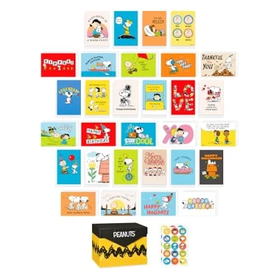 American Greetings 30 Count All Occasions Peanuts Card Pack with Keepsake Box and Envelopes