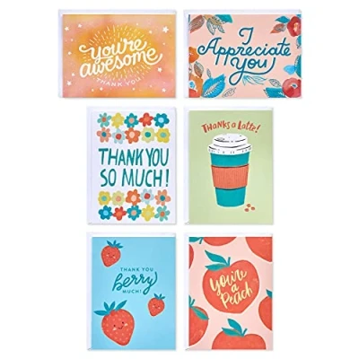 Includes 48 cards (6 unique designs, 8 cards of each design) and 48 white envelopes Each card is blank on the inside allowing you to write a personalized message This set of blank greeting cards features bright and celebratory artwork on each cover to inspire you to write a personal thank you message on the blank space inside each card. Cards feature thank you and thinking of you imagery with bright and trendy hand lettering Assorted thank you greeting cards are perfect for her, for him, for kids or for anyone, including a friend, boyfriend, girlfriend, husband, wife, co-worker, classmate, kid and a family member or relative like a son, daughter, mom, dad, grandma, grandpa, g