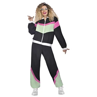 Amscan 80's Joggersuit Purple Fancy Dress Costume, Black, L