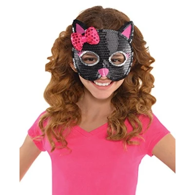 Package includes: 1 x child size cat mask Features a cat nose and whiskers, cat ears and a stuffed pink sequin bow on one ear. Secure with the attached elastic strap. Tranform your child into curte litte cat with this sequin mask. Fits most children., Manufacturer: amscan
