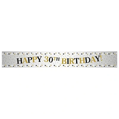 Add a touch of sparkle to their birthday with our sparkling celebration party range. Silver banner with a starry print and a Happy 30th Birthday message Length: 2.7m Great for walls, windows, or doorways. Material: Foil, Manufacturer: Amscan