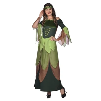 LADIES Forest Maiden Fancy Dress Costume Set complete with long flowing dress and headband Perfect for hen parties, everyday fancy dress, Halloween and more