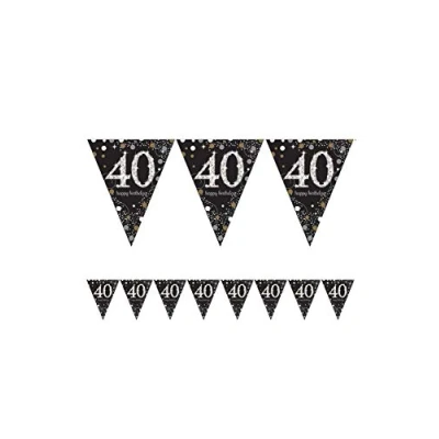 amscan Gold Foil 40 Celebrations Flags Banner 156" x 8.5"