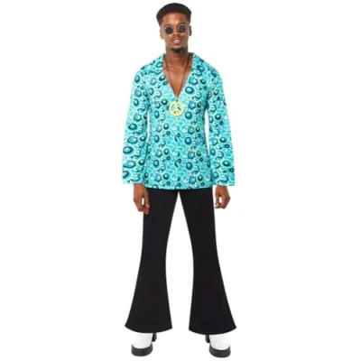 LARGE Mens Hippie Party Shirt Hippie Shirt with necklace 60's style dress up Perfect for stag parties, everyday fancy dress, Halloween and more