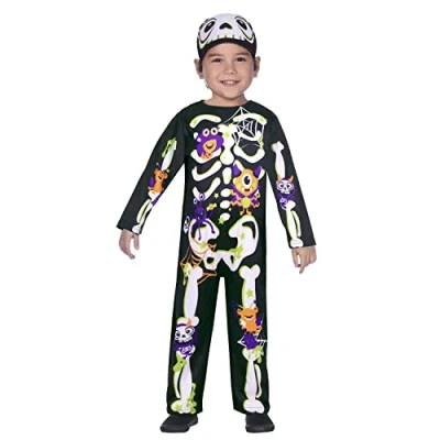 Grab your little one a super-cute costume that they will love this Halloween. Black jumpsuit with a skeletal and monster print. The matching hat completes the look. Packet includes: Jumpsuit & Hat 2-3 Years Once you’re done with this fun costume, please consider re-gifting or giving to charity to give it a new life., Manufacturer: Amscan
