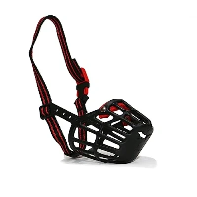 Ancol Gentle Strong Secure Plastic Dog Muzzle in Black Red Basket Style Biting Control for Aggressive Dogs Pre Moulded Shape Size 4 20cm x 7.5cm
