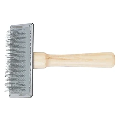 Tangle Removal: Designed with fine wired bristles to gently ease out knots and tangles, helping to maintain a neat, well-kept appearance for your pet. Dead Hair Removal: Effectively lifts and removes loose hair from the undercoat, reducing shedding and supporting a cleaner home environment. Glossy Finish: Promotes a smooth, shiny coat by distributing natural oils across the fur, enhancing the overall look and health of your dog’s coat. Comfort Grip: Fitted with a traditional wooden handle that offers a secure and comfortable grip, ideal for extended grooming sessions. Coat Maintenance: Suitable for regular use on most coat types, helping to prevent matting and maintain a healthy grooming routine with ease.